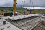 Die statische Wirkung der einachsig gespannten vorgefertigten Deckenplatten muss jedoch durch die passende Konstruktion auch den Anforderungen an eine Flachdecke genügen. Das wird durch die Anordnung von Gurtstreifen erreicht, die als deckengleiche Unterzüge von Stütze zu Stütze spannen. Die Lastabtragung ist mit dem System eines Trägerrostes zu vergleichen, indem die einachsig gespannten Deckenplatten sich in die Gurtstreifen einhängen. Die technische Umsetzung des Gurtstreifens wird durch die vorgefertigte Deckenplatte direkt ausgeführt. Die untere Platte des Sandwichquerschnitts stellt die integrierte Schalung dar, innerhalb der die Bügelbewehrung für den Gurtstreifen bereits werkseitig eingebaut ist [Bild 11]. Lediglich die untere und obere Längsbewehrung muss dann vor Ort noch in den Gurtstreifen eingelegt werden. Bei größeren Spannweiten wird anstelle der schlaffen eine vorgespannte Bewehrung in Form von Monolitzen verwendet [3]. Mit dem örtlichen Betonieren des Gurtstreifens entsteht ein Vollquerschnitt, der in der Lage ist, die aus den senkrecht dazu angeordneten Platten sicher aufzunehmen und zur Stütze zu transportieren [Bild 12].